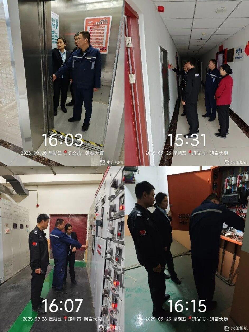 双节将至,巩义明泰项目组织各部门负责人,对写字楼开展了全方位安全检查。此次大检查包含电力系统、电梯安全运行、消防设施设备、大厦外围公共安全等,为全体客户创造一个舒适舒心的办公环境,我们一直在努力!(通讯员:贺晓培)