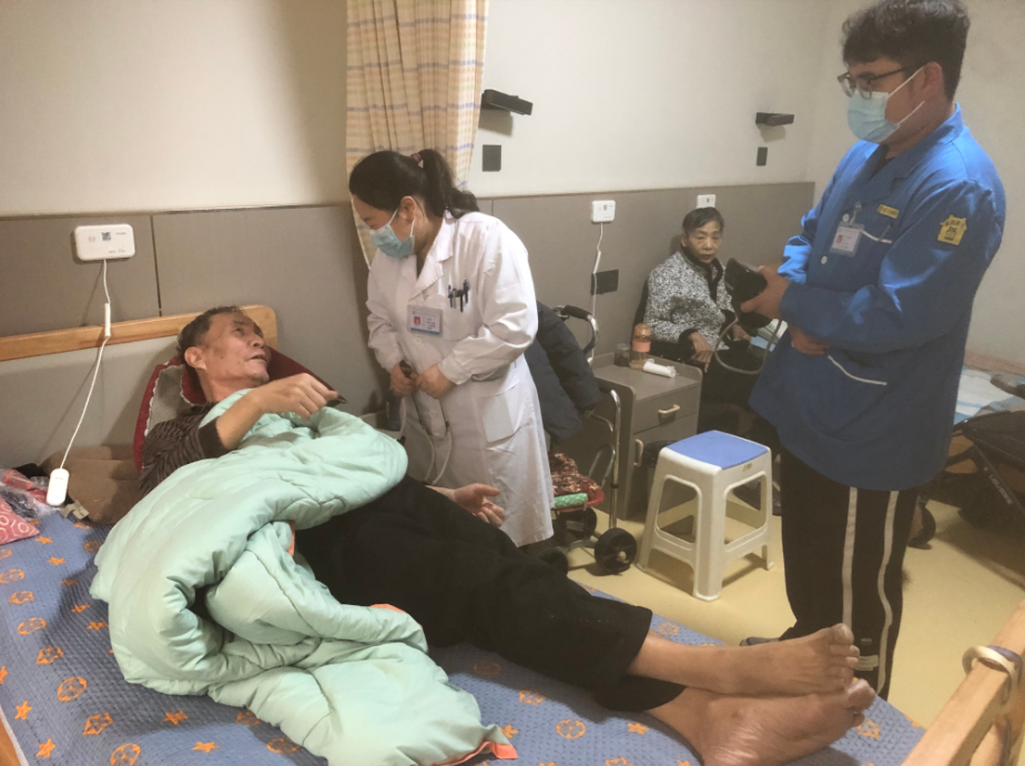 巡诊现场,医疗团队为养老中心全体入住老人提供了全方位医疗服务:先后查看了全部入住老人,逐一了解身体状况,同时为老人进行听诊检查。经诊断发现1名老人存在肺部感染情况,当即提出尽快输液消炎的专业意见;重点针对患有糖尿病、高血压、冠心病的老年群体,详细询问近期血压血糖控制情况、心功能状态及慢性病服药依从性,及时调整用药指导方案;对行走困难、体质较弱的老人进行一对一康复训练指导,助力其提升生活自理能力。