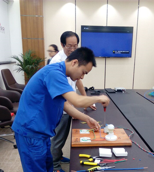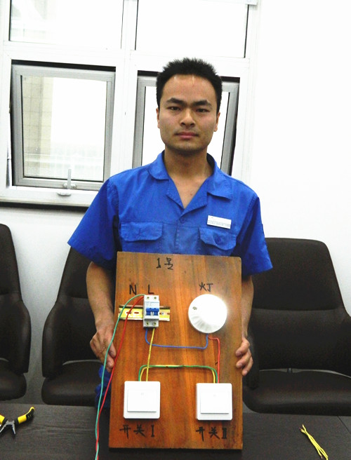 此次技能比武大赛由理论考试和实际操作两部分组成。理论考试共计70分,主要体现物业设备管理工作方面五大内容:消防(安防)系统、供配电系统、给排水系统、电梯系统、空调系统。实际操作共计50分,有三个项目经抽签确定一个,具体项目有:三相异步电动机自锁控制的接线;异地控制照明灯接线(双联开关);现场完成带互感器电表的接线,参加人员需抽签确定实操的项目。